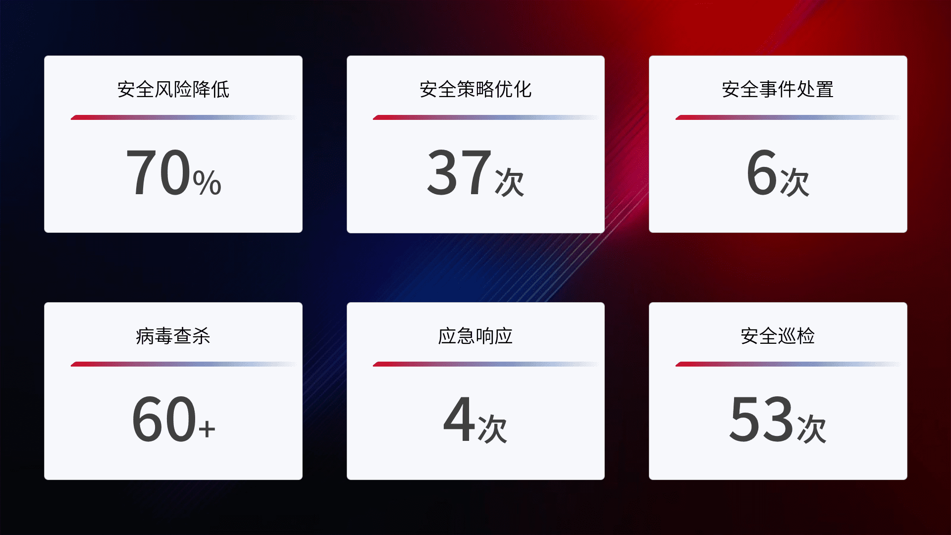 提供全面的安全事件报告体系,,,包括处置报告、、、周报、、、季度和年度总结,,,,结合持续监控,,,,帮助客户深入了解网络安全状况。。。